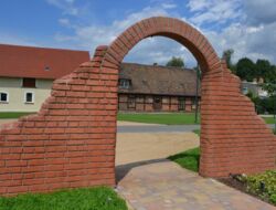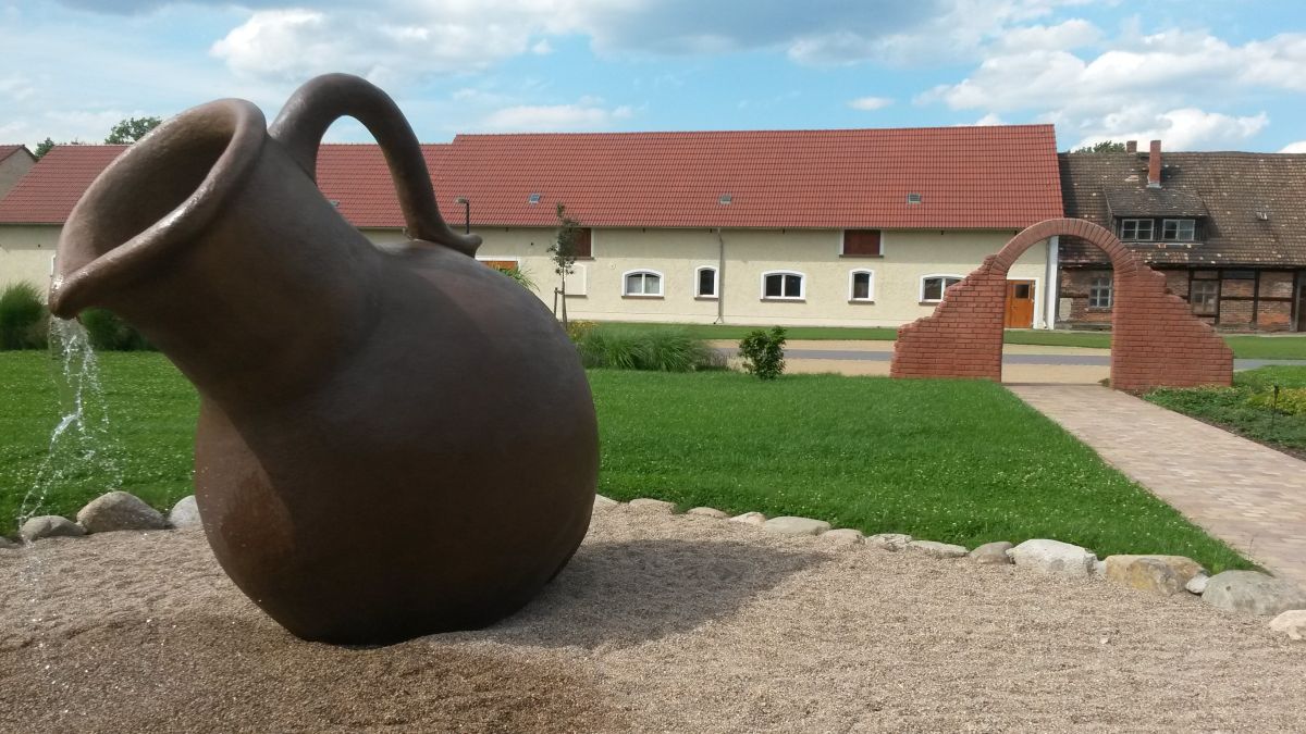 Die Tordurchfahrt in Sandsteinmaueroptik und der Wasserkrug aus Spritzbeton sind nicht nur eine Augenweide, sondern auch ein Beispiel für die endlosen Möglichkeiten der Herstellung individueller Elemente aus Spritzbeton.